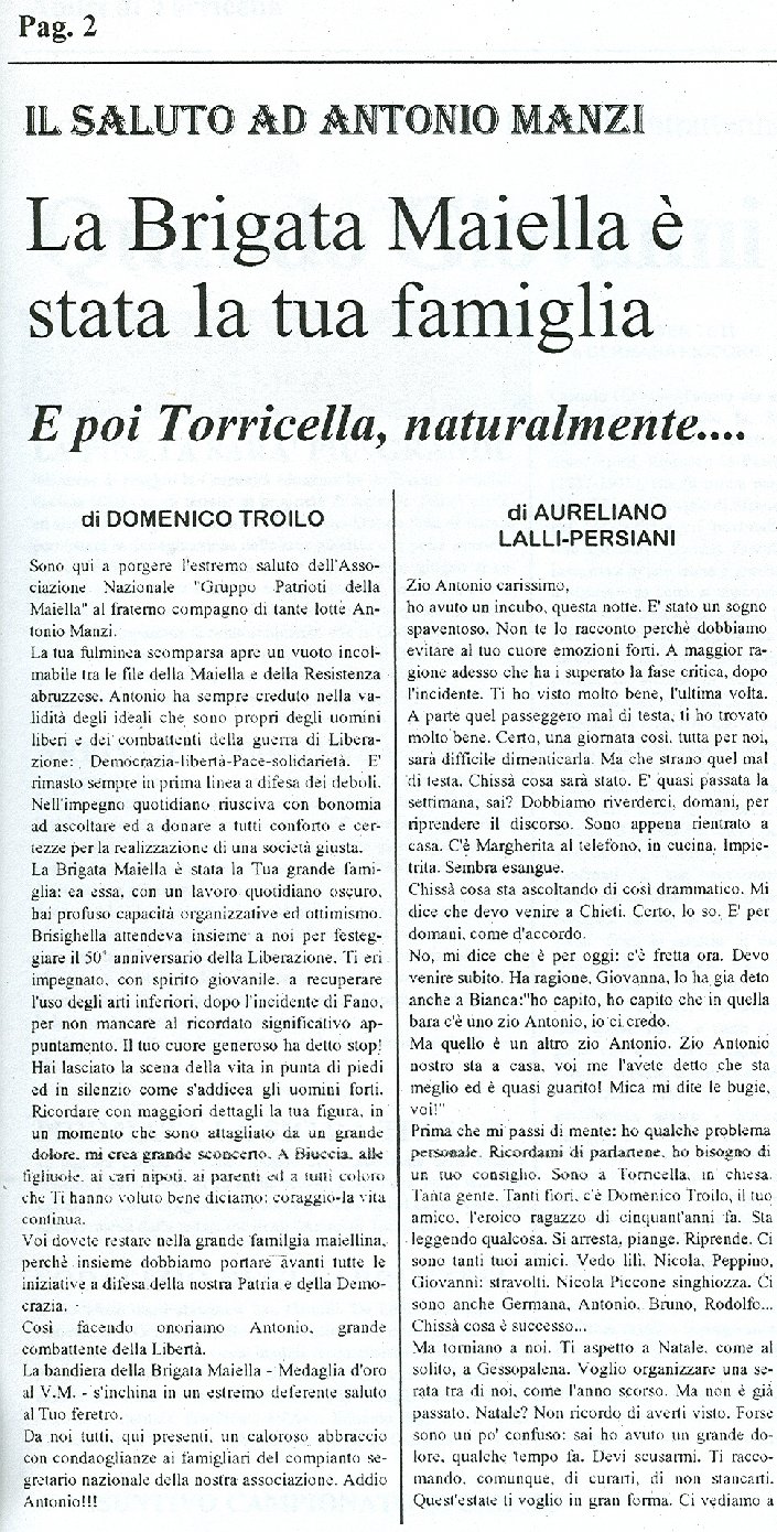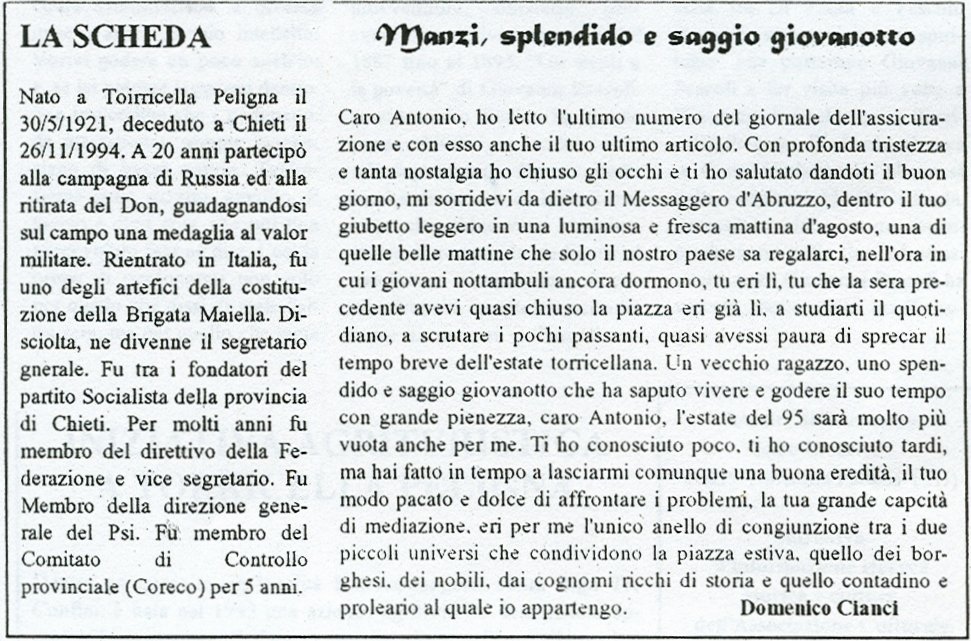 Il Saluto Ad Antonio Manzi