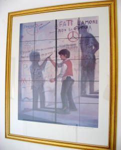 L’immagine di Cristo è esposta al cimitero di Torricella. Il ritratto di John Fante e gli altri quadri sono in mostra all’Hotel Capè. | The first art piece of Christ is on display at the Torricella cemetery. That of John Fante and the others are on display at the Hotel Capè. |