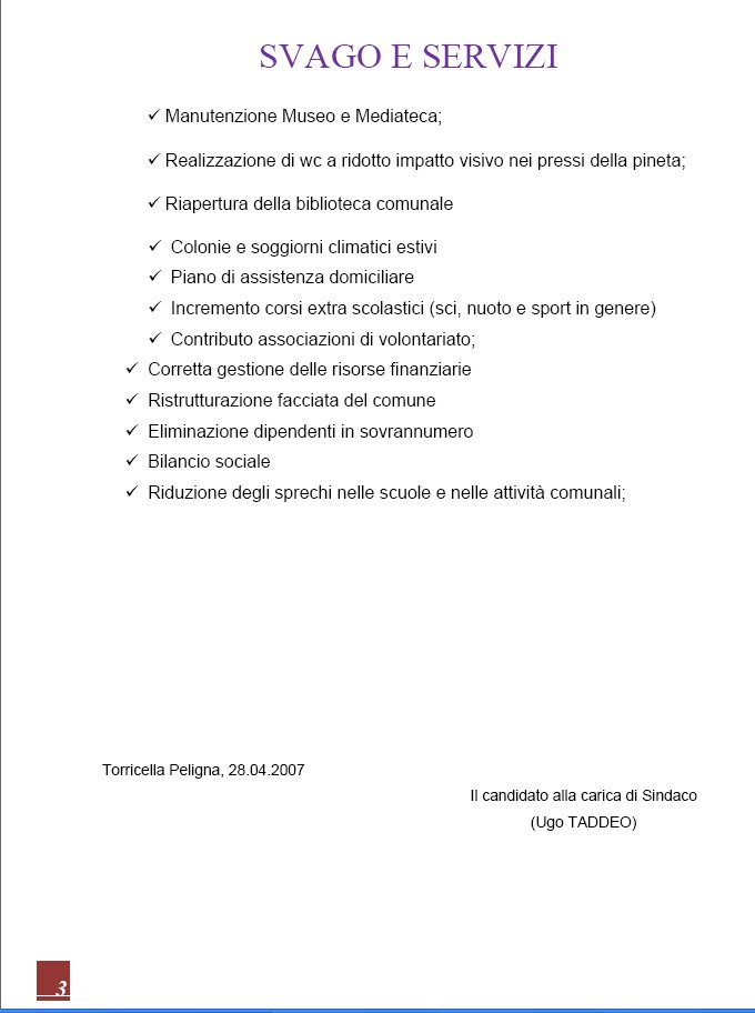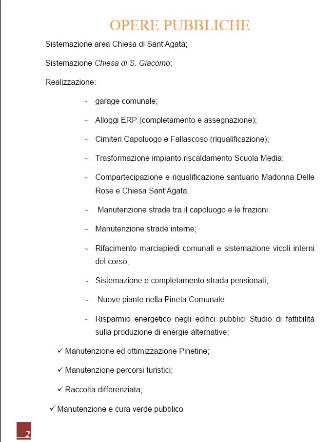 Programma Lista n. 2 – Sempre Uniti - Ugo Taddeo – Candidato Sindaco Slate 2 Platform - Forever United - Ugo Taddeo – Mayoral Candidate