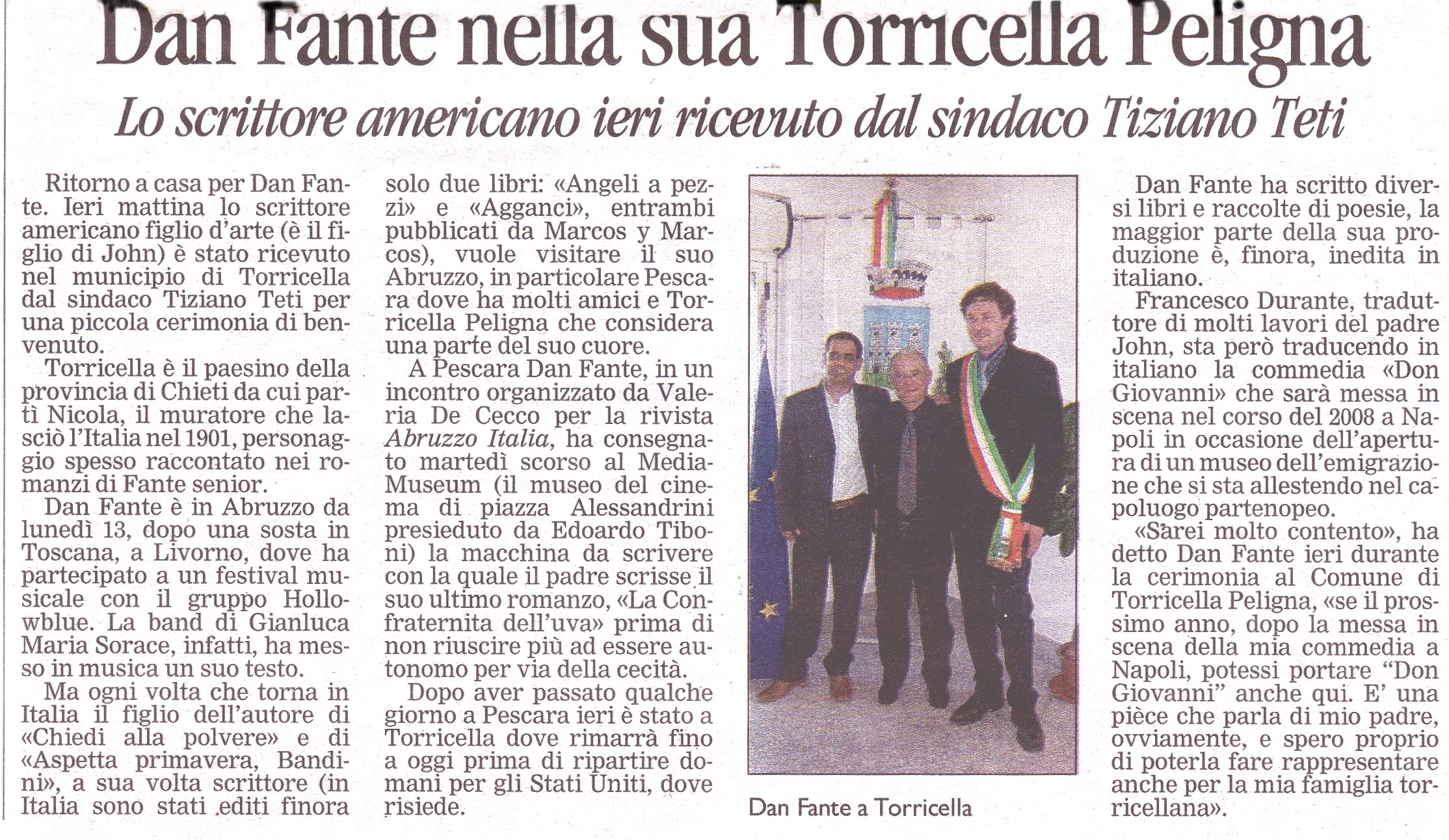 Last Tuesday, Dan Fante attended a meeting organised by Valeria De Cecco