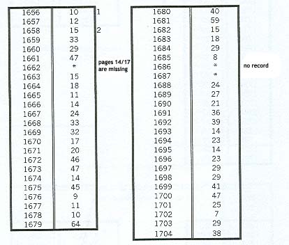 DEATHS Record no. 1 from 4/4/1656 to 11/30/1704