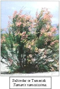 Tamarix ramosissima, T. chinensis, and T. gallica were introduced to North America from the Middle East in the early 1800s. This weed has been used for ornamentals, windbreaks and erosion control. By 1850, Saltcedar had escaped from these areas and infested many river systems and drainages in the Southwest - often displacing native vegetation. By 1938, infestations of Saltcedar could be found from Florida to California and as far north as Idaho. Saltcedar continues to spread rapidly and currently infests water drainages and wet areas throughout the United States. |