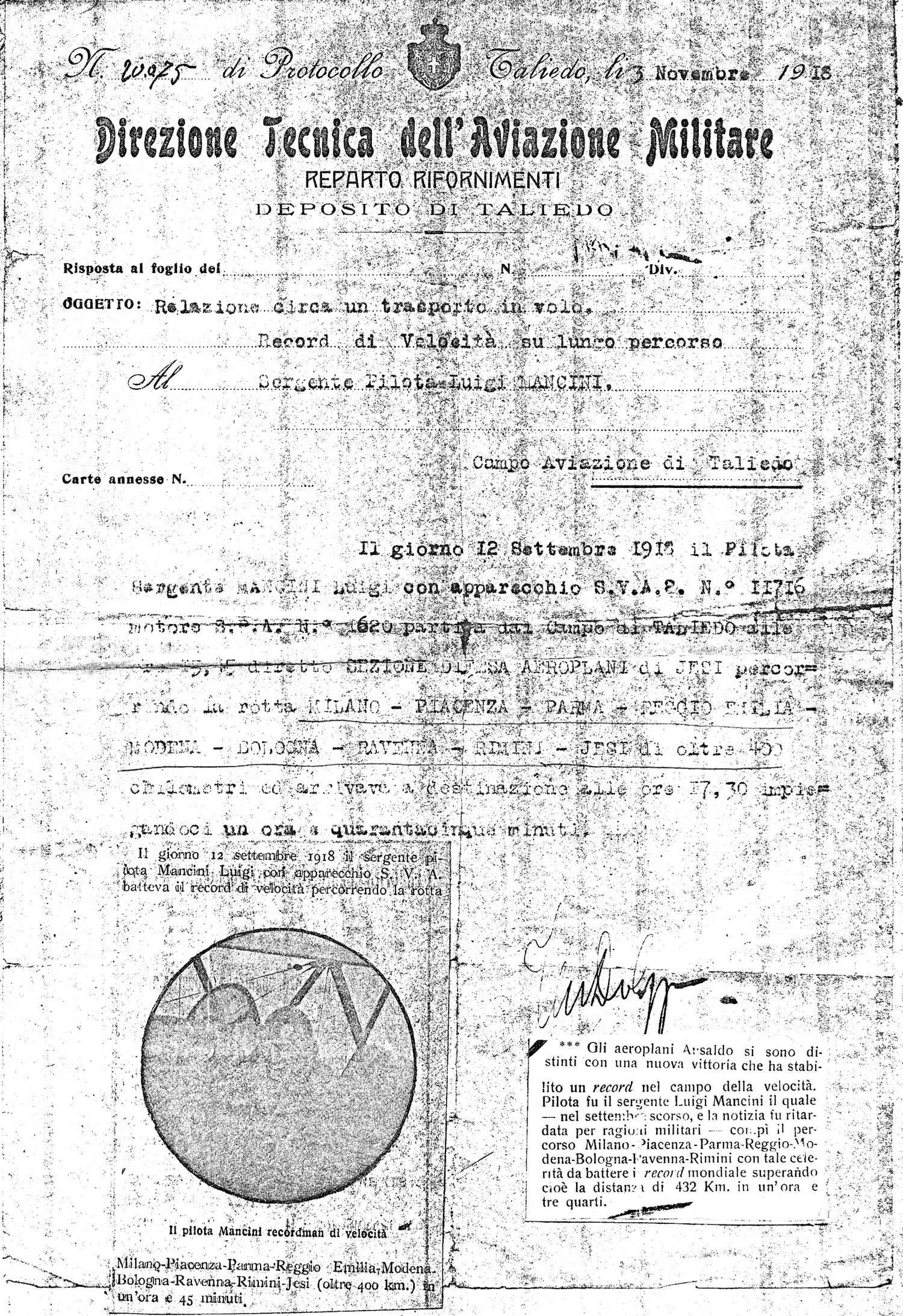 On the day of 12th September 1918, the Pilot, Sergeant Luigi MANCINI