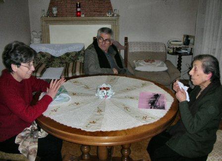Za Mariannina (a destra) parla della storia di Torricella con Ada Ficca (a sinistra) ed il marito di Ada, Pietro Ottobrini (al centro)