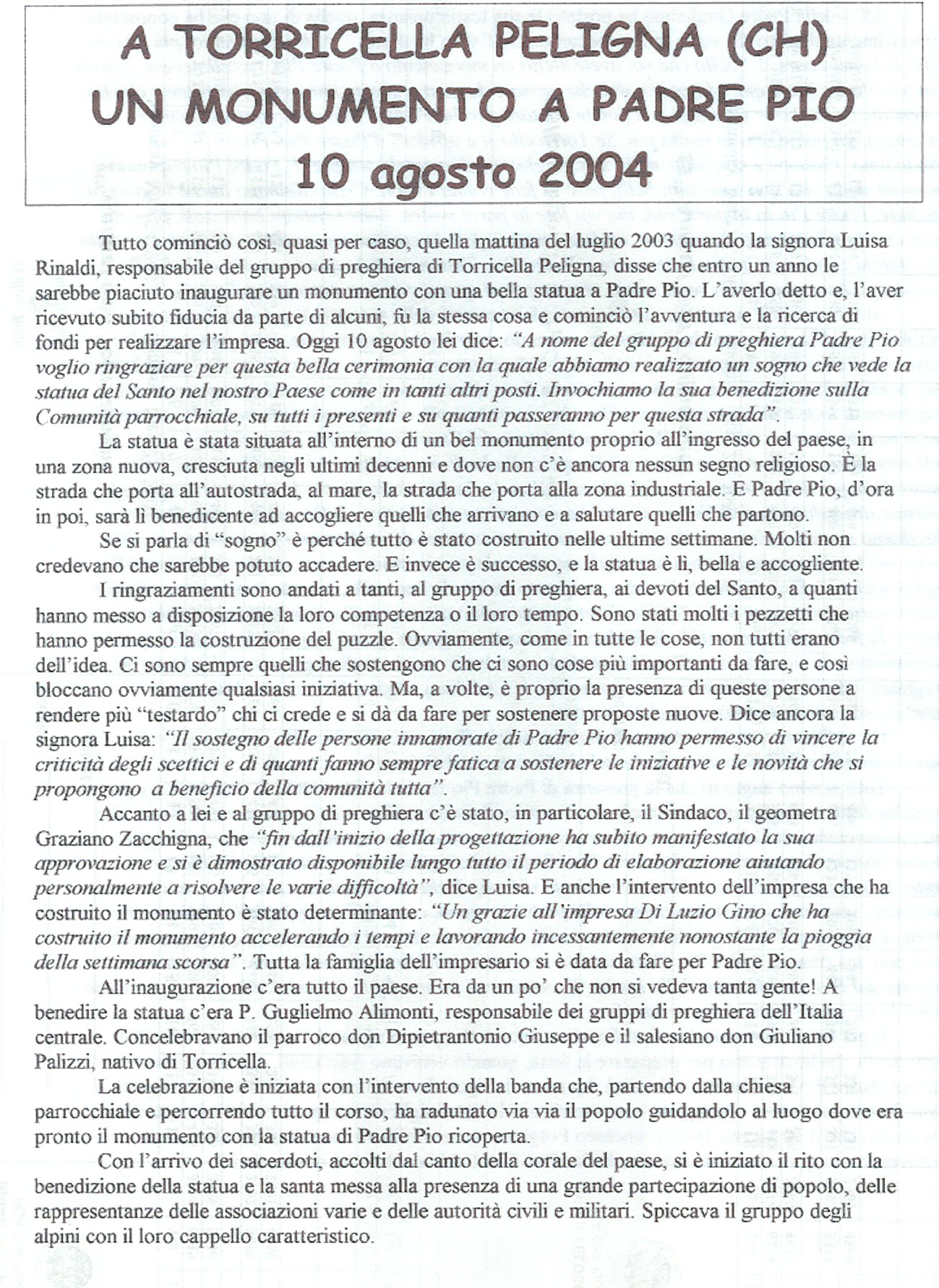 di Don Giuliano Palizzi, a Torricella Peligna, 10 agosto 2004