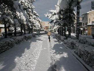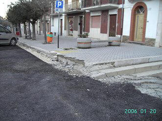 Dicembre 2005. Si sono conclusi i lavori di sistemazione del corpo stradale nel tratto di Corso Umberto I. A primavera inizieranno i lavori per la nuova pavimentazione dei marciapiedi. La nevicata di novembre che ha rallentato di molto i lavori della pavimentazione stradale. Foto di Tiziano Teti |
