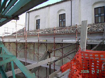 The Church Roof A year has gone by since they had to close the Church of San Giacomo Apostolo because part of the roof above the left aisle had collapsed. Finally, after many problems with the economy and planning that eventually became acceptable to the Belle Arti, the roof has been rebuilt. Directed by Mario Piccirelli, the Engineer, and following the plans of Enzo D’Ambrosio, the Architect, the firm of Taddeo Donato has rebuilt the whole of the roof above the left aisle so it looks the same as it did before it collapsed, but using iron beams instead of wooden ones. A special method was used with the beams resting on cement stringcourses so that they don’t exert too much force on the stone structures. The beams support the planks of wood on which the tiles rest.. Now it only needs to have the apse covering rebuilt, in order to eliminate the damp behind the main altar, certainly in the spring with the good weather. It seems, however, that so far no-one has received any payment, neither the Director of Works not even the firm. The money, € 70,000.00 promised by the Abruzzo Region, has still not arrived, although there have been assurances that it will soon reach the Parish’s account. Meanwhile the Church is still closed. |