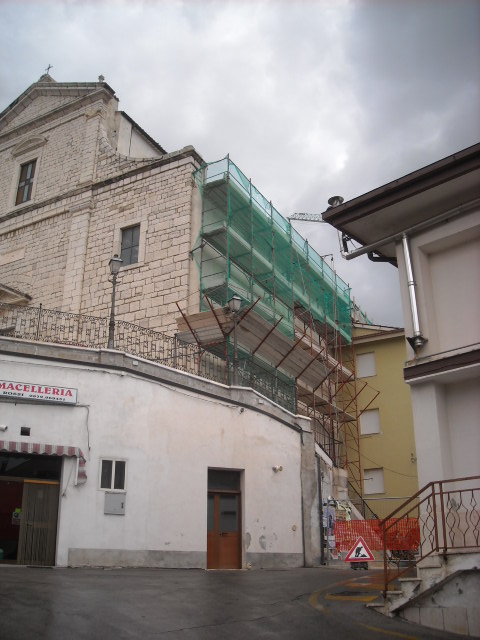 Church of San Giacomo Apostolo (St. James the Apostle) In the meanwhile work on the reconstruction of the church’s roof continues. The first task involved uncovering the roof to get an idea of what needed to be done. They discovered that the beams are all in bad condition and need to be replaced along with the roof tiles, trusses and all else. They substituted the wood beams with iron ones, and at this point a good part of the roof has been completed. “Weather permitting, we might get the roof done by the middle of October”, I was told by parish priest, Giuseppe Di Pietrantonio (Father Peppino). “Then, when will the church be reopened?” This is the question on everyone’s mind in Torricella. “When can we get back into the church?” The answer is short and simple: “We don’t know”. All the inside work needs to be completed, including repairs to the cracks in the pilasters and walls inside the façade; then, things need to be painted and the heating system needs to be reworked. Only then will the Department of Monuments and Fine Arts give its approval for us to use the church again. In any case, to prevent water from seeping in and to maintain the stability of the church, this work needs to get done. What does the budget look like? “Very bad” was the answer of Father Peppino. Each year Italians donate 0.8% of their income taxes to a religious denomination of their choice or back to a state welfare fund. Work on the church has been able to go forward because the Italian Episcopal Conference, an assembly of Italian Catholic bishops, set aside some of these taxpayer donations for the roof (80,000 euros). That is when the Taddeo Construction, the company that had previously repaired the roof over the church’s left nave, began the project. “Yet, we won’t get any money until we present a detailed account of the work completed”. So, at least 3 or 4 months will go by before any money arrives. Three years ago a complete reconstruction plan was presented with a total price tag of 360,000 euros. We can take away from this sum 70,000 euros plus some additional money that were used to fix the roof on the left side and do some other repairs. Now another 80,000 are being used to do the roof on the right side. So, to finish the work completely, another 150,000 euros are needed. The Abruzzo Regional Government had earmarked 100,000 euros for the project. The funding seemed to be a sure thing, but as we all know now, it has gone up in smoke. The hope is that after the next elections something positive will happen. Bah! It’s an illusion when considering the dire economic status of the public sector and of all of Italy. Who will give any funds at this point? How will things get done? Well, it will certainly not be easy. Most likely we will have to do as we have done in the past and count on the support of Torricellans in the town and throughout the world. One thing remains certain: this 16th century church will not reopen for a long time.
