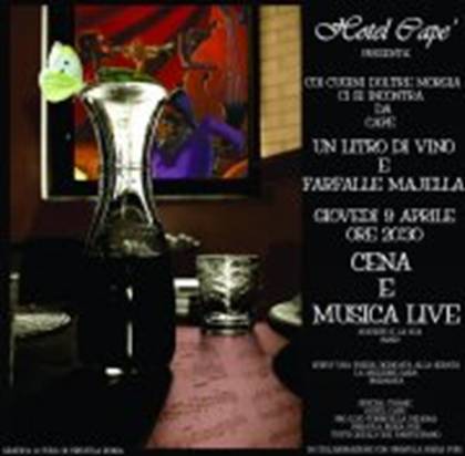 A proposito di Facebook, la sera del 9 aprile, al ristorante Capè, ci sarà una cena-riunione dei “facebookiani” dal titolo FARFALLE MAIELLA E UN LITRO DI VINO AL CAPE’. Ci sarà anche musica dal vivo.