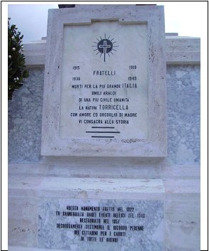 4. “Lu munumente” Il 4 novembre, in Italia è festa delle Forze armate. La commemorazione si è svolta in pineta, come sempre, come ormai è tradizione consolidata, ai piedi del Monumento. Un folto gruppo di personalità del paese ed un corteo di alunni delle scuole elementari e medie hanno portato una corona di alloro sotto la stele che ricorda i caduti di tutte le guerre, finalmente restaurata. Infatti i lavori di consolidamento e ristrutturazione del Monumento che si erge nel punto più alto della collina che accoglie la Pineta comunale, iniziati a settembre sono ormai conclusi. Erano anni che non si interveniva per ristrutturare “Za Filumene”, come i torricellani amano chiamare la statua dell’angelo che scrive i nomi su un registro. E’ l’immagine di Torricella, come il colosseo è per Roma, è l’orgoglio dei torricellani e oramai meritava un forte intervento di ristrutturazione. L’ammontare dell’appalto è stato di circa 45.000 euro, sono stati eseguiti dall’impresa Edil Cecchini di Roccascalegna, e sono consistiti in un consolidamento della fondazione, perché dava segni di cedimento nella zona anteriore destra, nel restauro del rivestimento di lastre di marmo e quindi nella pulizia dei marmi e delle scritte. Qui di seguito vi sono delle immagini di prima e dopo la cura e si nota come ora il Monumento si integra con i lavori di restauro delle scalinate. Come è oggi :