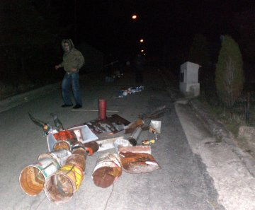 Even in Torricella on the eve of Saint Martin’s, that is the evening of 10th November, this feast was celebrated (I use the past tense because for the last twenty years it has not been celebrated) and by tradition several youths with a bundle of old tins, “chamber pots”, tin kitchen equipment, all tied together with wire, which they dragged through the streets during the evening, beginning about nine or ten and carrying on until late, causing noise and good cheer. The course depended on who they wanted to tease, that is the direction depended on which way to the house of the husband they thought was “cuckolded”. Then they would go from one cuckold to the next as they went around the village. They used to arrive very quietly at the dwelling, tie a little cord to the door-knocker, they would hide nearby and then pull the cord to make it knock. Someone would come to the door to see who it was … “Who’s there?” and the youths would reply “SAN MARTINO” and run away dragging the “cioccoli” making the husband angry because they were teasing him, and he would be shouting from his window, cursing the youths who had goaded him. (“Cioccolo” in Torricellan is a useless object of no value, fit only to be thrown away. In this case, it mainly involves cans, drums, metal containers, lids and other items chiefly made of metal because the greatest enjoyment came from making a lot of noise whilst dragging these chains of tins and scraps.) This year, the new Administration, lead by the Mayor, Tiziano Teti, wanted to revive this old typically Torricellan tradition (on the Internet I have tried to dig out any other places where they have a similar tradition but I could not find anything). They announced a type of competition (see the poster) and they asked young people to take part. This was definitely not a “feast of the cuckolded” with derision towards some unlucky fellow, like we told you about, but rather more simply a parade of the “Cioccoli”. The response was far better than predicted. There were about ten bundles, full of large tins, sheets of metal, shutters etc., each needing three or four youths to pull. It began at about half past nine and went on until midnight. They went to all parts of the village, from the Pinewood to the Corso, from below the Church to the Calacroce neighbourhood, from the Church to the Tower, and down the hill as far as Saint Antonio’s, then up to the Corso again as far as the roundabout, which they ran around several times at high speed. At the end, they went towards the Town Hall’s Garage where the rubbish truck was awaiting them, its doors open to swallow up all the “cioccoli”.