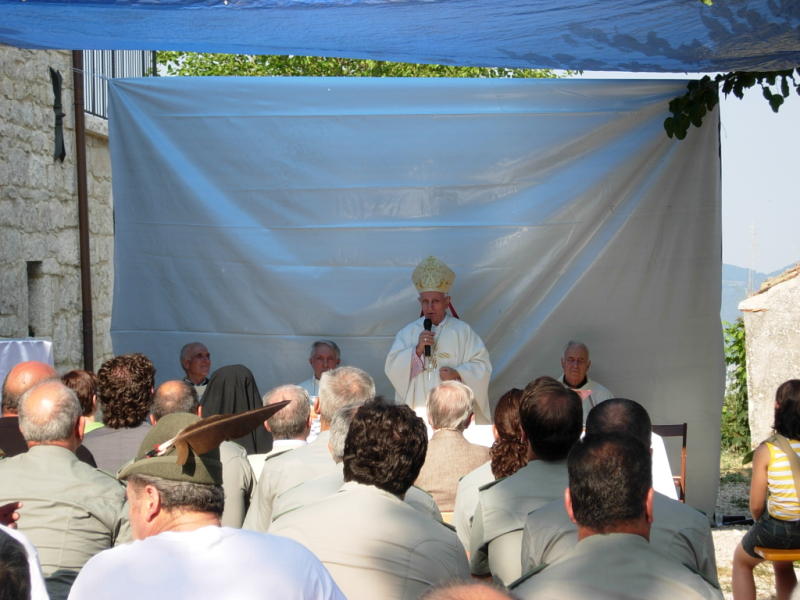 I arrived at Father Giustino’s monastery at 5:10pm; the religious celebration had just begun. The sky was clear and it was very hot. There was an area prepared in front of the monastery for the celebration. Most gathered on the right, on the side shaded by large trees; the foresters and the local authorities, on the other hand, gathered on the left, the side exposed to the sun. During the religious celebration one could not help but take in the surrounding countryside - blue sky, pristine nature, birds in flight and that unique forest fragrance. Father Giustino and Sister Lidia received the participants of the celebration with the sort of love that all human beings ought to have. After mass we were all invited to a reception they had put together with sandwiches, deserts, drinks and tasty, typically Torricellan “panini alla tresca”*. It was a wonderful day dedicated to nature and to those who work to safeguard it from the threat caused by disrespectful and self-destructive human behavior.