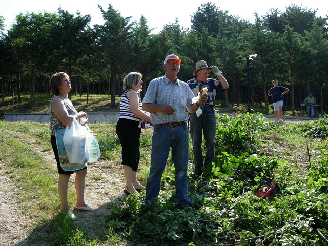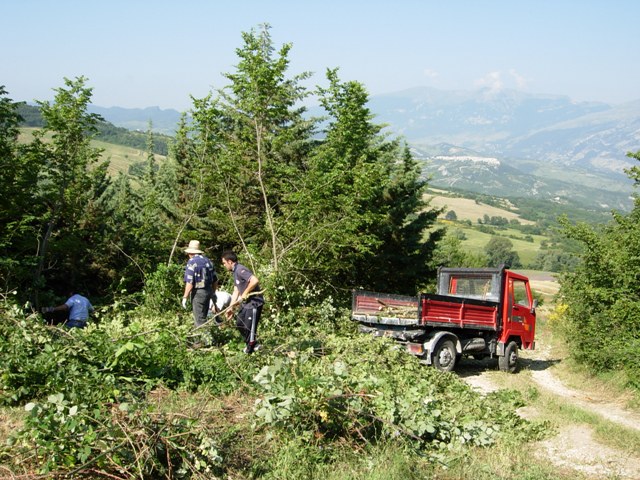 On Sunday 29th June, the third ecological day was held and over sixty volunteers took part. There were members of the Alpinists Group, members of the Proloco, common citizens and members of the Town Hall Administration, all of whom met up early in the morning and continued the clean-up work of the village. This time they worked on the South side of the Pinewood, where the little open-air theatre is located and the new area for refreshments, which has been built at the back of the little sports fields. The cleaning up went as far as the lower part of the Pinewood that lies near the Cemetery and the Fonte of Falloscoso. At about 9:30 the women arrived bringing drinks and rolls for a short restorative pause. The sun was high in the clear sky and it was really hot, the volunteers were dripping with sweat but in their eyes was a look, which told of their satisfaction and pride in the work they were carrying out. Speaking with some of them, I understood how great is their desire to see the village once more at the height of its splendour, and they realised too that much is already being done to that effect. At 14:00 hours, the work ceased and the volunteers met in the little Pinewood near to the Alpinists Chapel for a well-deserved meal. Despite being very tired, these men and women never ceased to smile - and we owe them a debt of gratitude and thanks for their involvement and for the example they gave of “true” attachment to this, our village, and to these splendid locations.