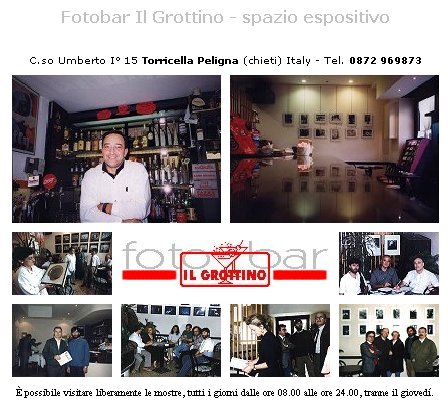 Il Grottino - Bar and Photogallery Since 3 October 1992 the Circolo Fotografico Controluce (Photo Club “Back Lighting”) manages a photogallery at the Bar “Il Grottino”, every month displaying the works of an established photographer and member of