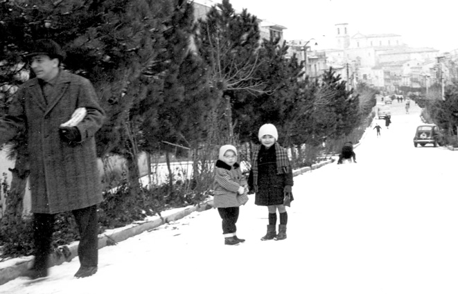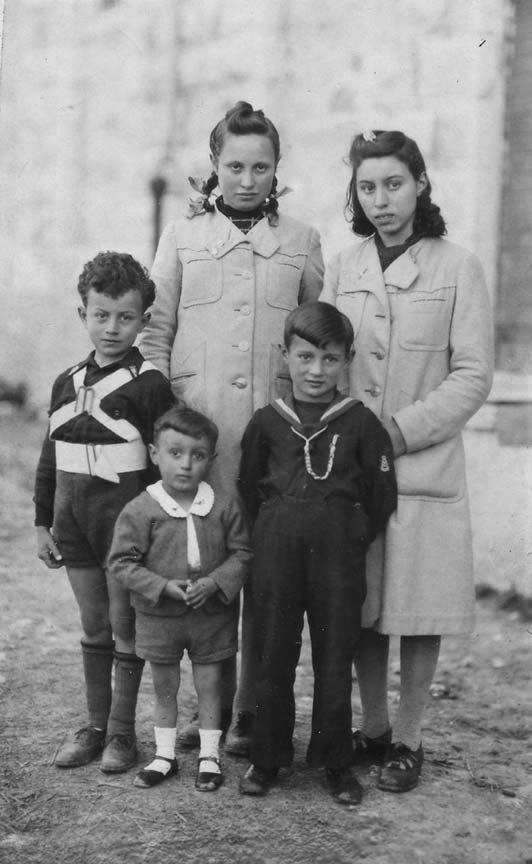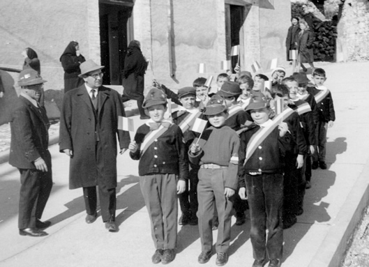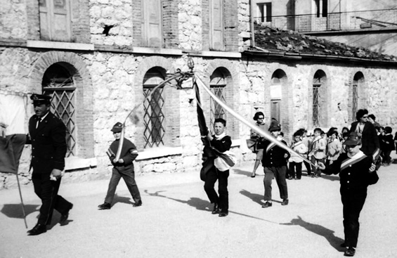 Nicolò, guardia comunale (town police officer), Enzo Di Martino, Camillo Di Falco, Nicola Morrado, maestra a sinistra (teacher on the left) Rita Porreca, maestra a destra non riconosciuta (teacher on the left not recognized).