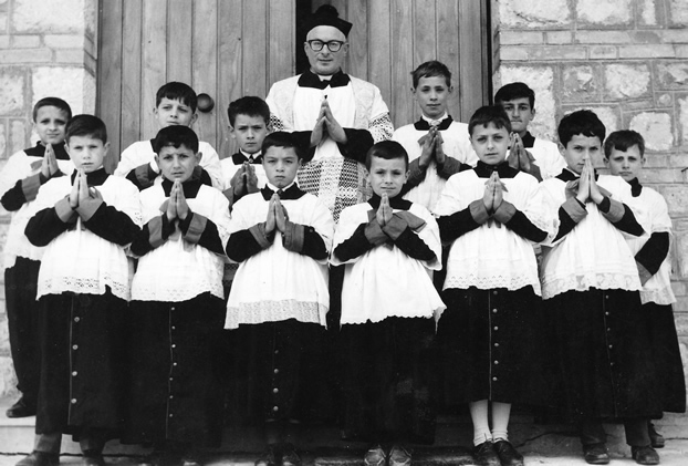 Prima fila in basso (front row): Enzo Antrilli, Silvio Sambuco, Donato Cicchini, Rodolfo Ficca, Peppino Porreca, Lucio Porreca Seconda fila in alto (back row): Eugenio Taraborrelli, Enzo Di Martino, Enzo Di Iorio, don (Father) Francesco Di Pasqua, Luciano Ficca, ?, Giuseppe Fante