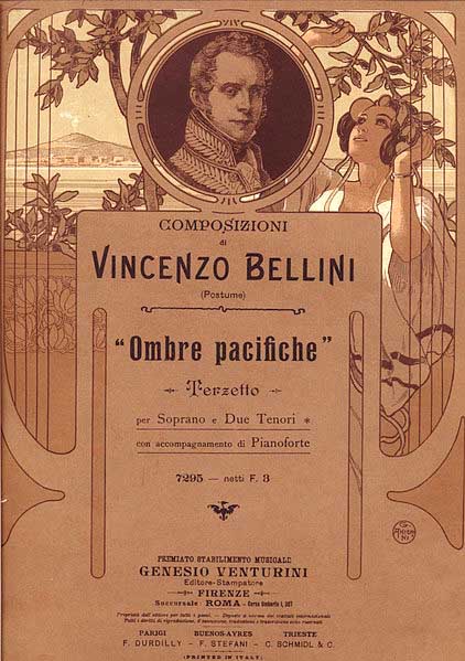 Frontespizio dell'edizione Venturini (1901) della cantata Imene (intitolata dall'incipit "Ombre pacifiche"). | Vincenzo Bellini Jr. (Vincenzo Salvatore Carmelo Francesco Bellini) (18011835) |