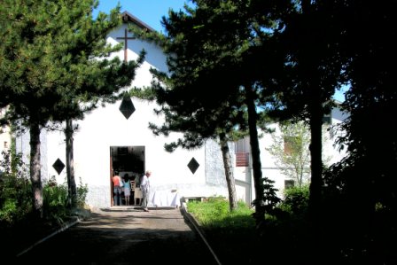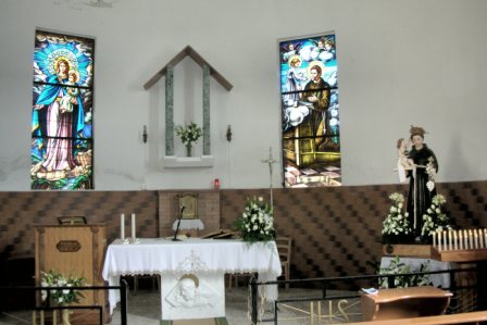Situated in the neighborhood of Sant’Antonio. During the war, the Germans destroyed the small church. The statue of Saint Anthony was in a niche that miraculously remained intact. The mason Antonio Fedele, il Biondo (the blonde one) was given the task of rebuilding the church; he finished it in 1960. There are 4 stained glass windows representing the Evangelists and one high up behind the altar symbolizing the bread and wine; these are all the creations of the artist Federico Tamburi. There are 2 others made time ago on the sides of the altar; they depict Saint Anthony and Mother Mary, both with Child Jesus. |