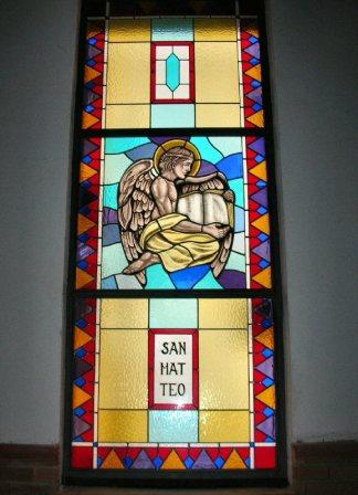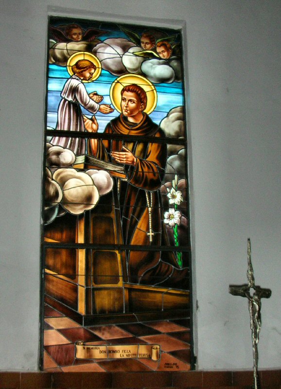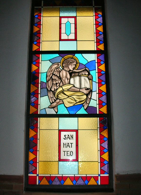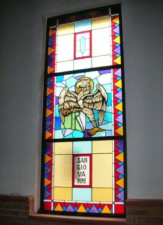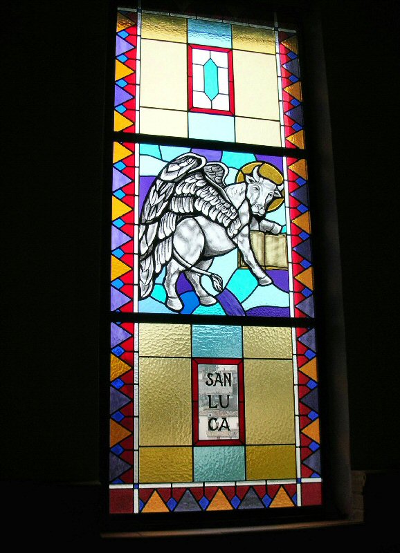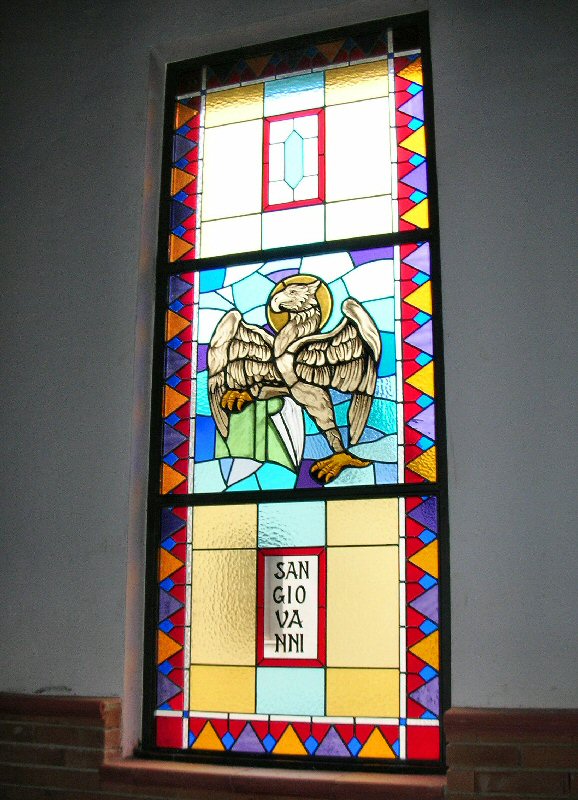 Last year (2007) a stained glass window symbolizing the holy bread and wine was placed high up behind the altar of the Church of Sant’Antonio. In June of this year (2008), the church was adorned with four more stained glass windows, representing the Evangelists: Matthew, Mark, Luke and John. Federico Tamburi, born October 6, 1949, in Altri, province of Teramo, Abruzzo, created all of these stained glass windows. The artist continues to live and work in Altri. He is a painter, sculptor, graphic artist and master of stained glass. He studied at a high school specializing in art and in the Architectural Department of the University of Pescara. Since 1977 he has been Artistic Director of “CAMPER”, where he produces alongside his wife stained glass for both sacred and decorative purposes. He has produced glass of polychrome, woven lead and metallic oxide paint fired at high heat (about 600 degrees Celsius). His stained glass is found in buildings throughout the world. His paintings are present in various museums, galleries, foundations and public entities. During the span of his career, he has also made mosaic pieces and stone and marble sculptures. The window frames, in powder-coated, hot galvanized iron, are fixed shut. Luigi Crivelli aka Gino, a retired blacksmith, made these frames. Gino Crivelli di marirose was born in Torricella on December 2, 1947. He continues to live and work in Torricella. The window symbolizing the holy bread and wine was mounted thanks to the help of Pantaleone Ficca, a retired mason. He provided manual assistance and scaffolding. Pantaleone Ficca di ruscie was born in Torricella on April 29, 1942. He continues to live and work in Torricella. The Di Pietrantonio-Coladonato Company produced the protective glass. Battista Di Pietrantonio was born in Fallascoso on October 16, 1949. His colleague, Franco Coladonato, was also born in Fallascoso. They now both live and work in Torricella. The installation of the Four Evangelists was quite involved because the windows were in poor condition. The windows were mounted thanks to the collaboration of Vincenzo Antrilli, a retired mason. He donated 7 days of his time and the scaffolding. Vincenzo Antrilli della attelle was born in Torricella on April 5, 1938. He continues to live and work in Torricella on Via delle Coste. These projects were completed thanks to the support of the parish priest, Father Giuseppe Di Pietranonio, and above all, thanks to the generosity of devotees of Saint Anthony in Torricella.